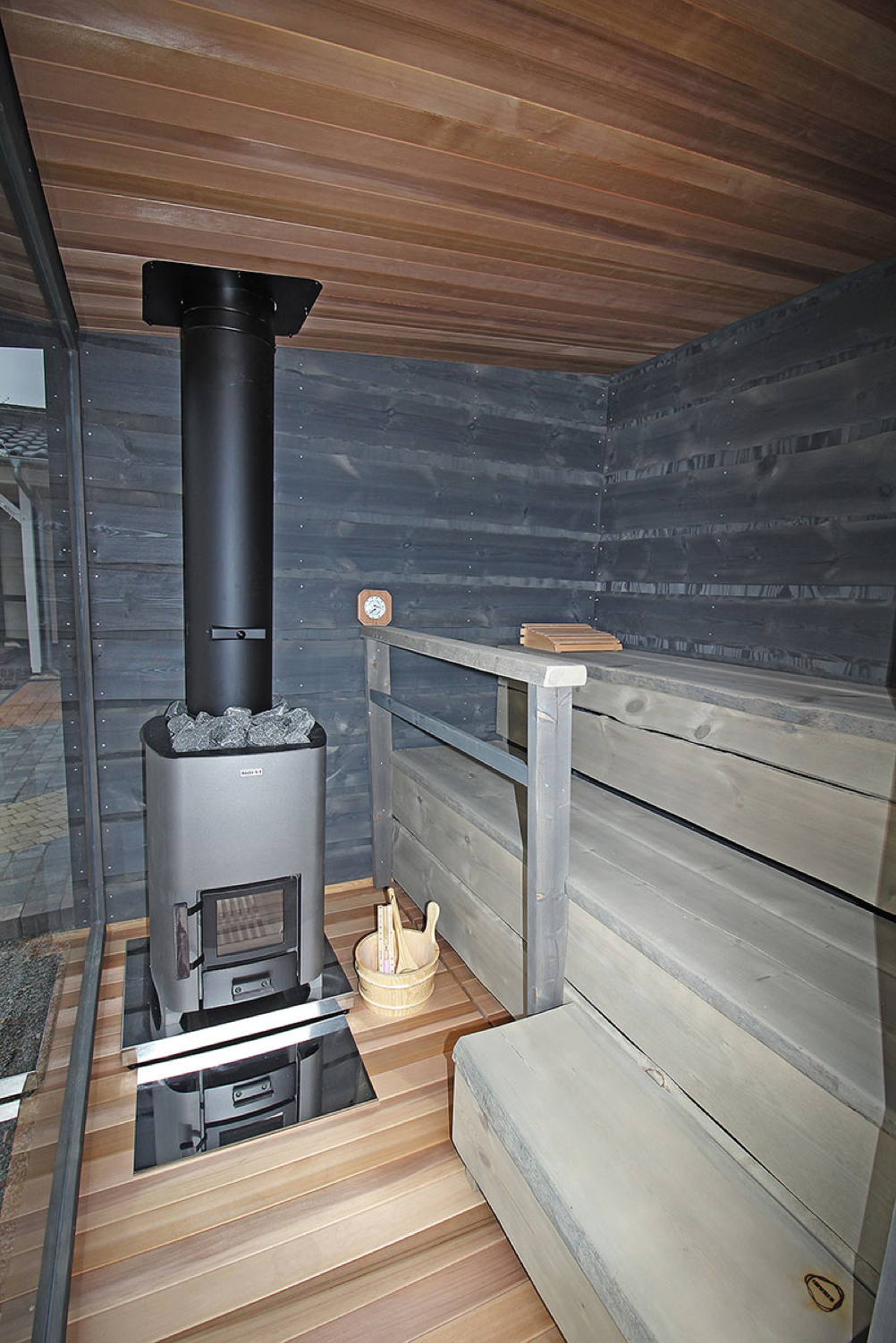 Finnische Gartensauna mit Holzheizofen –
